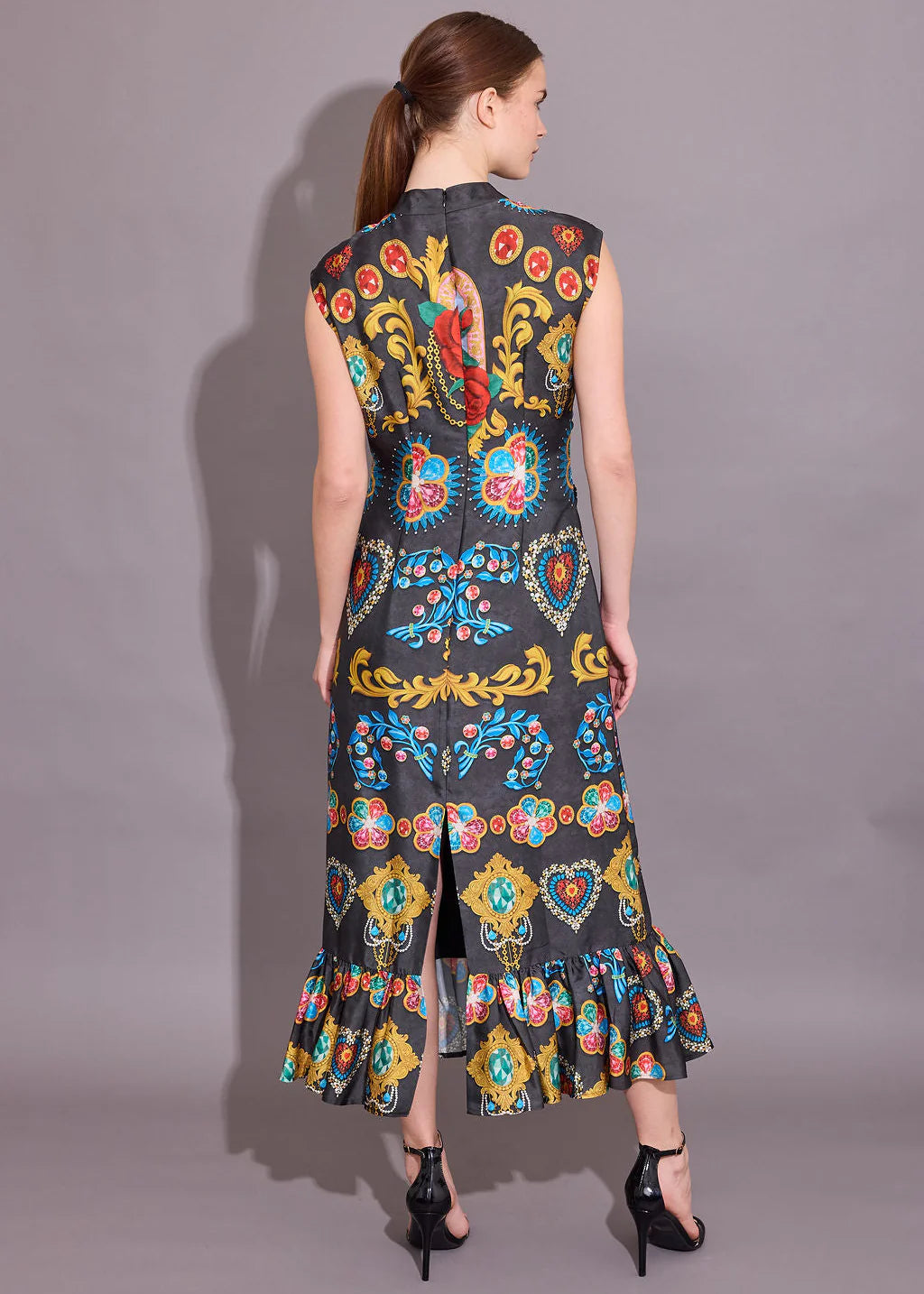 Say hello to our gorgeous Estelle dress! This form-fitting and classic, maxi style frock with cap sleeves and ruffle details will be the perfect addition to your winter closet.